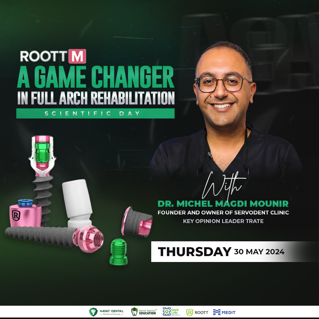 Unlock the secrets to unparalleled full arch rehabilitation with ROOTT-M, with DR Michel Magdi in ROOTT-M: A Game Changer in Full Arch Rehabilitation scientific event.
